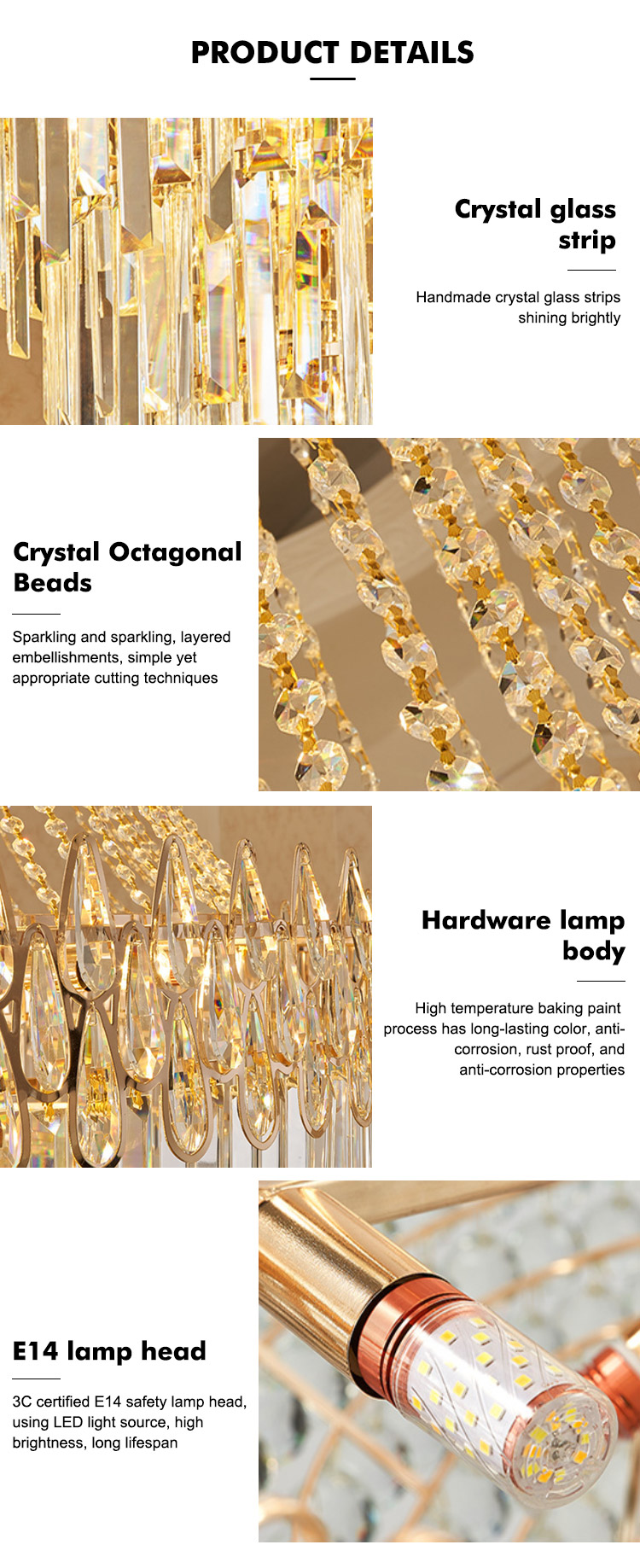 Unique Luxury Crystal Feather Chandelier Light Gold Pendant Light